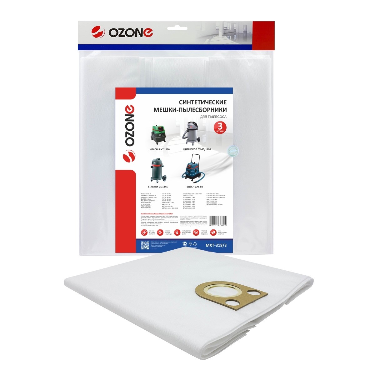 Фильтр-мешки синтетические OZONE для пылесоса BOSCH GAS 50, FELISATTI VC50/1400 (3 шт)