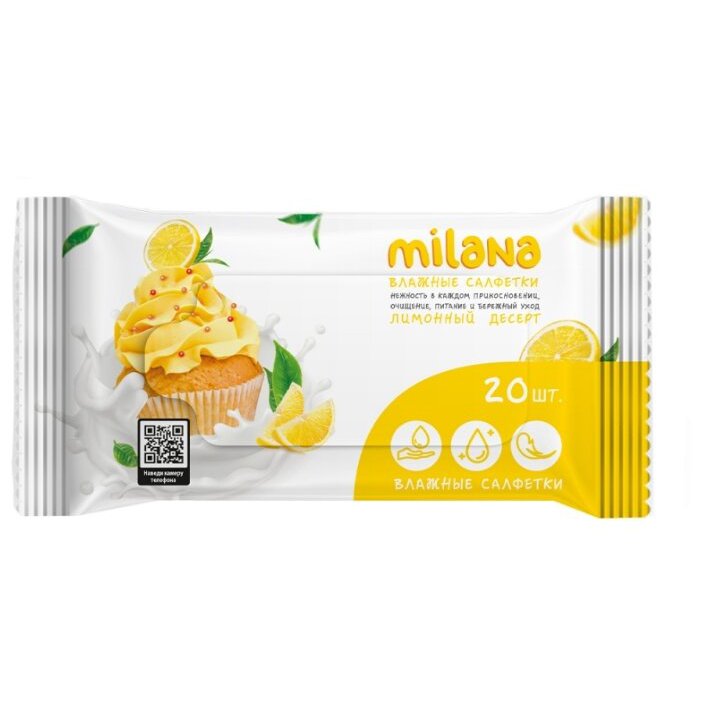 Салфетки влажные антибактериальные Milana Лимонный десерт (20 шт.)