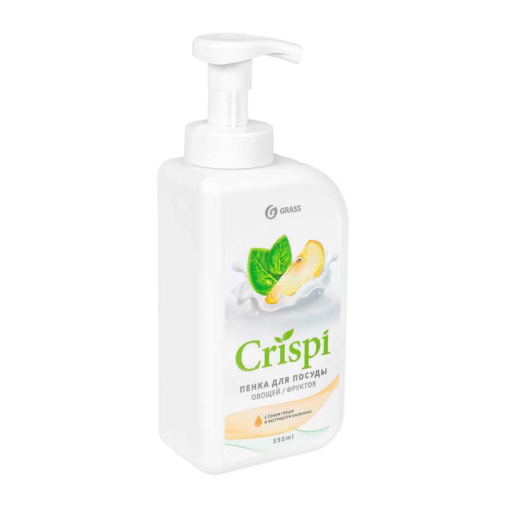 Главная Аксессуары, масла, запчасти Химия Бытовая химия и клининг Средство для мытья посуды GraSS «CRISPI» с соком груши и экстрактом базилика, 550 мл